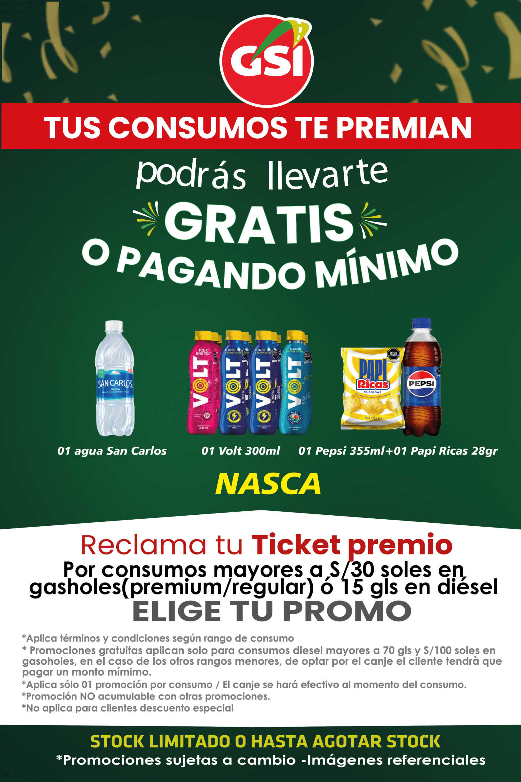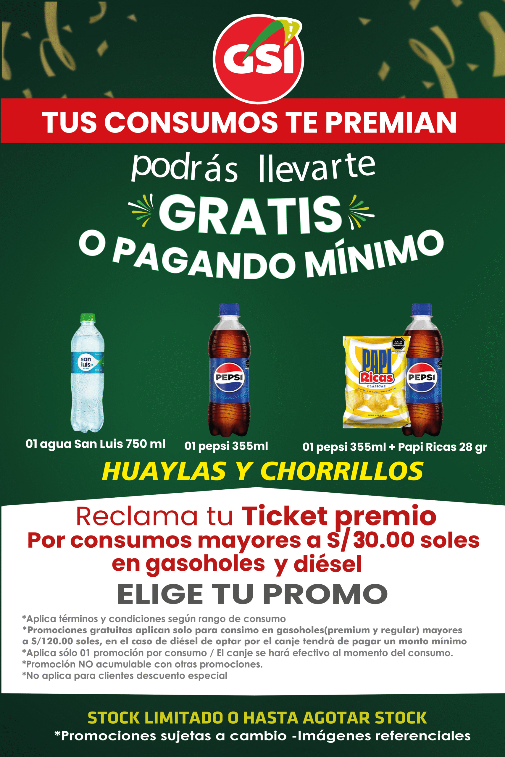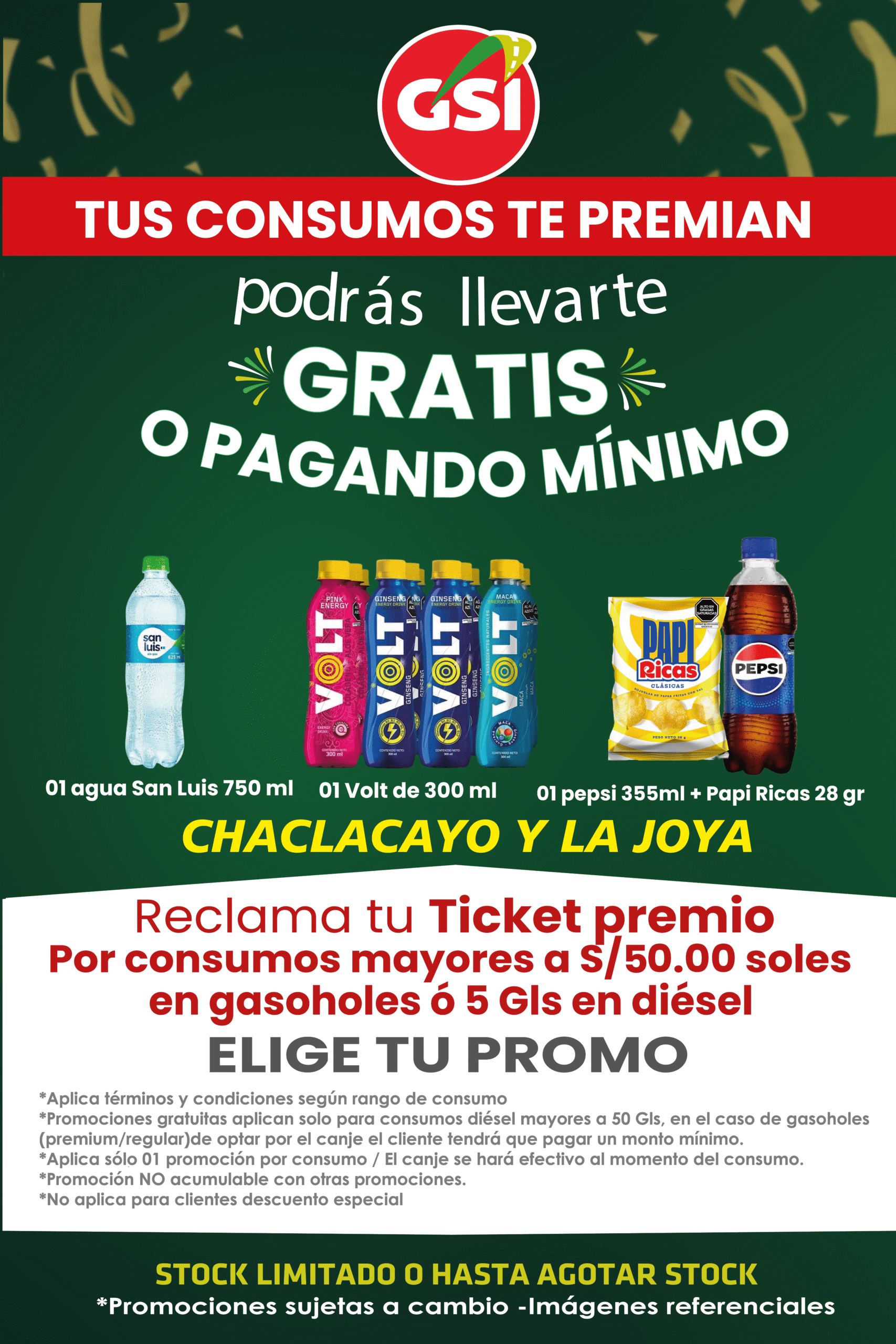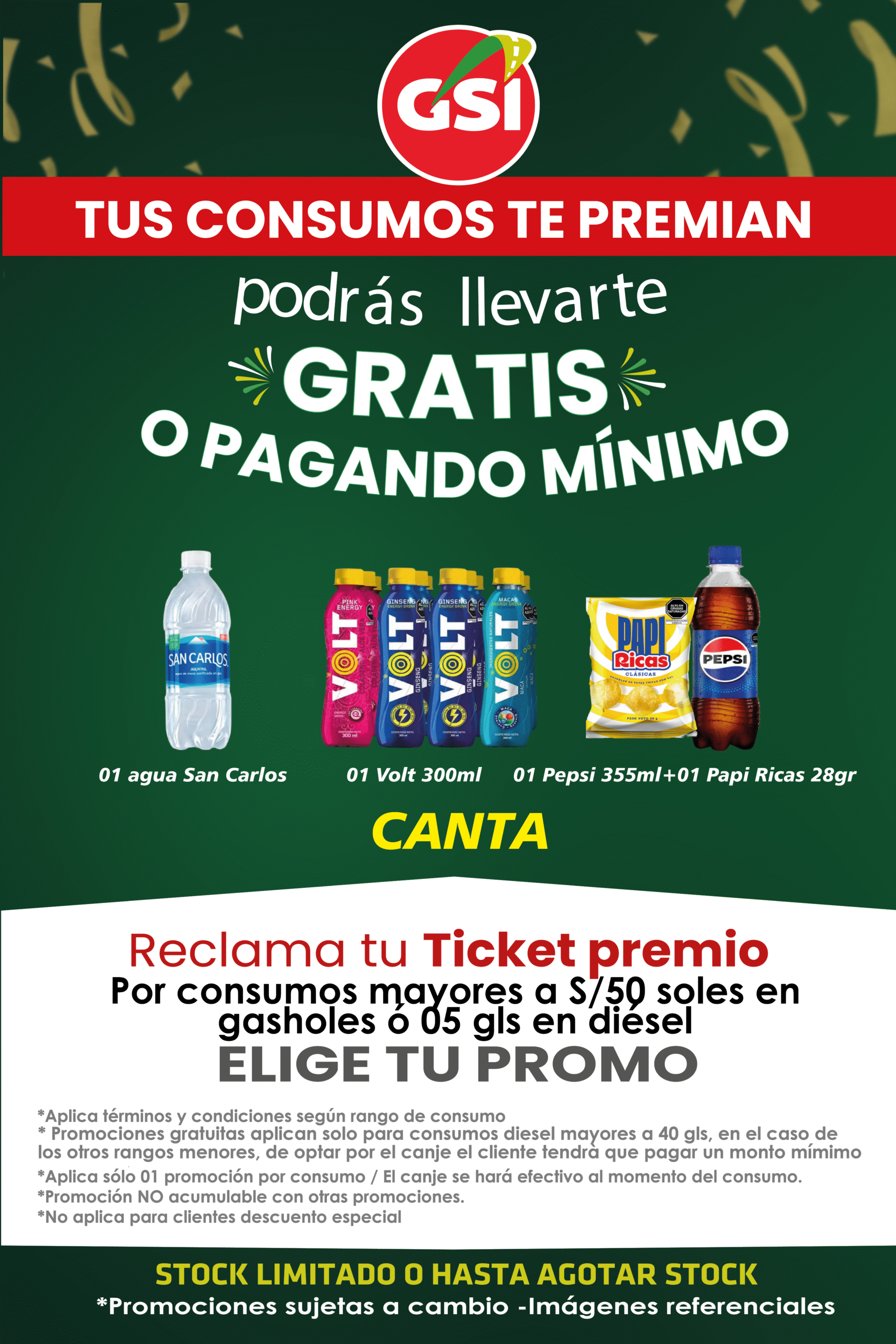 Dinámica: Por consumos de S/10 soles en combustibles líquidos, GNV, GLP y GSI MART, llévate cualquiera de estas promociones